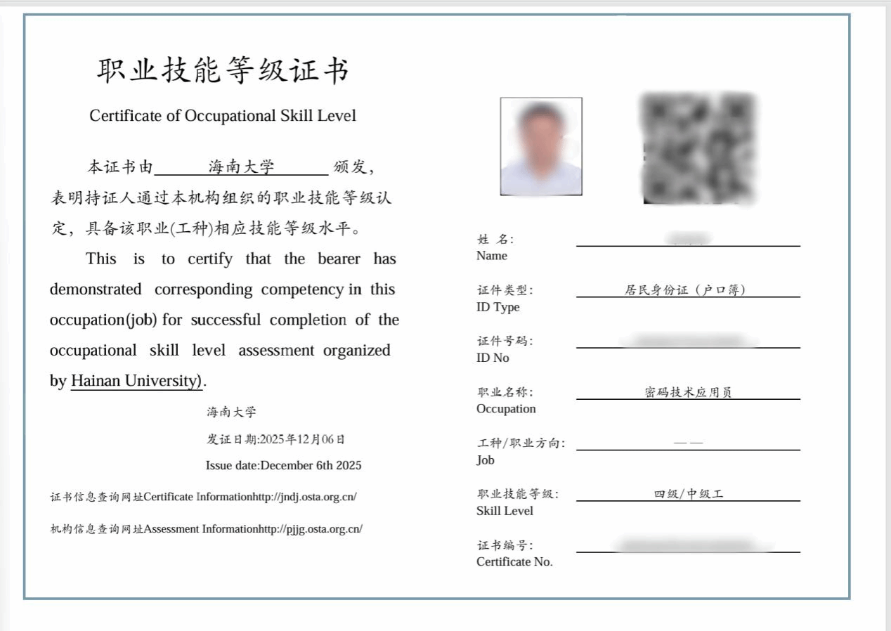 密码技术是数字经济高质量发展的安全基石。本次认定考试的顺利开展,不仅完善了本省密码技术应用人才的职业评价体系,更通过产教协同为构建具有海南特色的密码人才生态奠定了坚实基础。通过认证的人员将获得全国通用的职业技能等级证书,其专业能力将得到行业与社会的广泛认可。